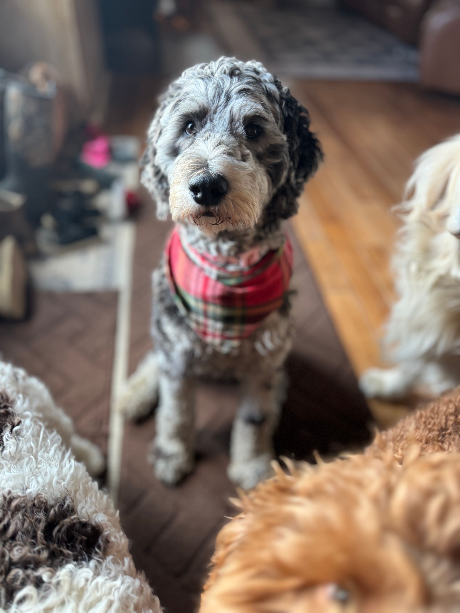 Both of these girls are multigenerational mini goldendoodles with curly coats. Maizey is the red abstract, and Bailey is the red parti. Both girls are exceptionally friendly, personable, and wonderful family dogs. They are both wonderful additions in our program and are we are thrilled with the pups they produce!